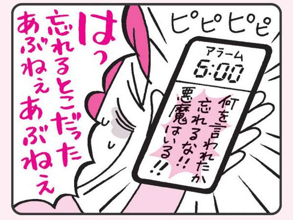 現在、離婚に向け、2人の娘を連れて別居しようと計画中です。友人にもよく「あんたはお人好しすぎて、人生を滅ぼすよ」と言われます。元々好きで結婚した人ですし、ひどいことを言われても、夜になると「もしかしたらいい人かも」と思い直してしまします。だから忘れないように、毎朝6時に目覚ましのアラームが鳴るのですが、そこに「何を言われたか忘れるな!! 悪魔はいる!!」というメモが見えるようにしています。